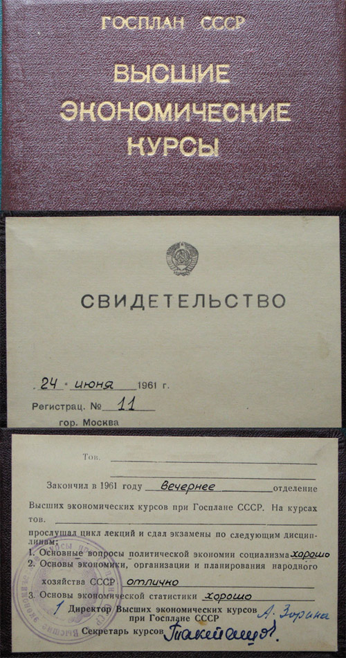 Госплан СССР. Высшие экономические курсы, 1961 год
