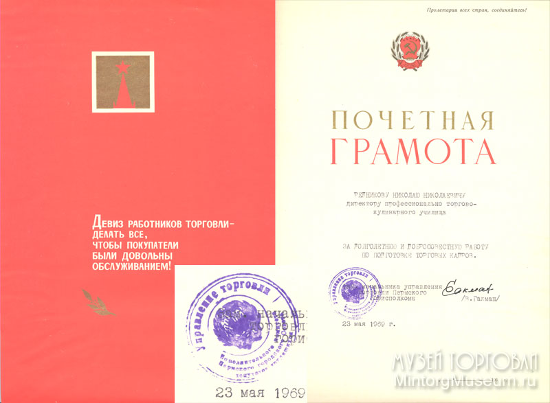 Почётная грамота, 1969 год